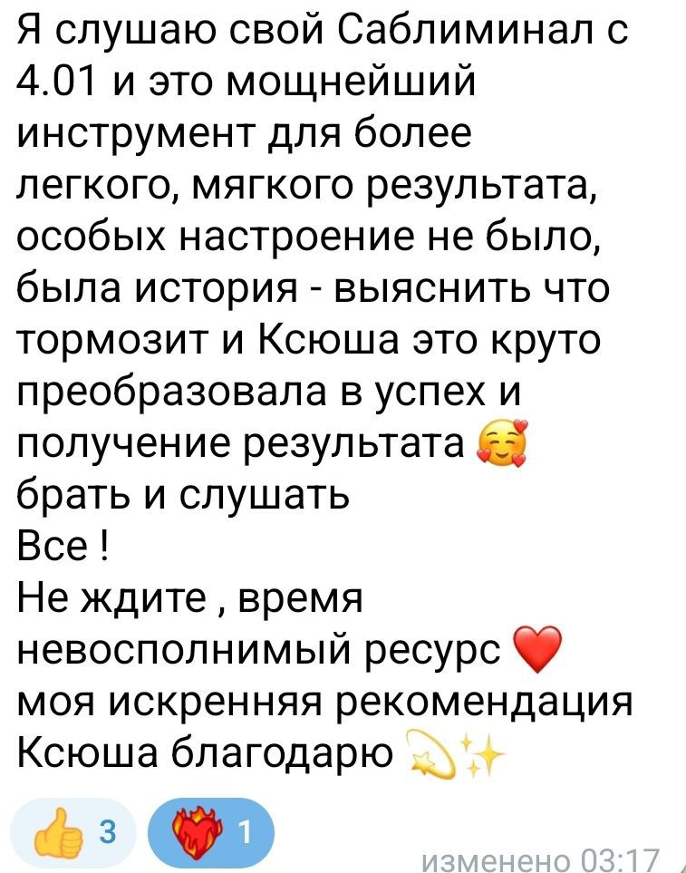 За последний год сотни людей прошли через трансформацию с моими саблиминалами. Вот часть того, что происходило: